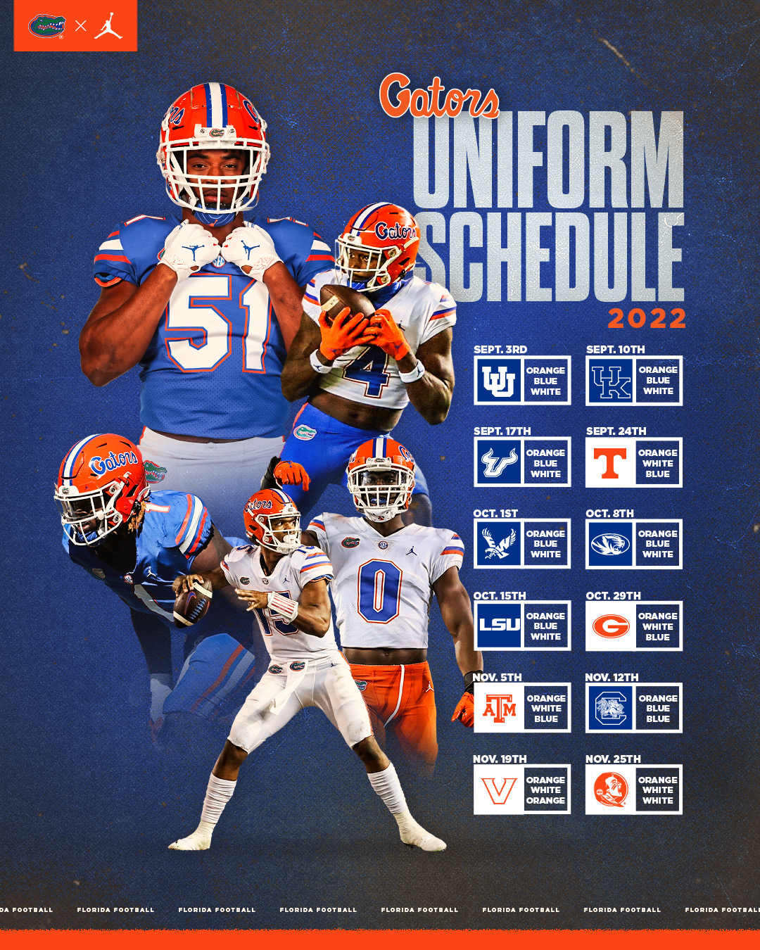 Florida Gators Football On Twitter Our 2022 Uniform Schedule Is Here Gogators Gatorsequipment Https T Co X0avqeokld Twitter